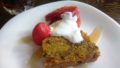 写真下:半分に切った食パンを2枚重ね、サンドイッチのように間に具材が挟んであるパン。具はマッシュポテト、角切りチーズ、ベーコン、たまねぎなど。表面にチーズとパセリをあしらって、ほくほくに焼いてあります。具材の味がマッチしていて美味しい!ボリュームもあるので、お昼にぴったり。