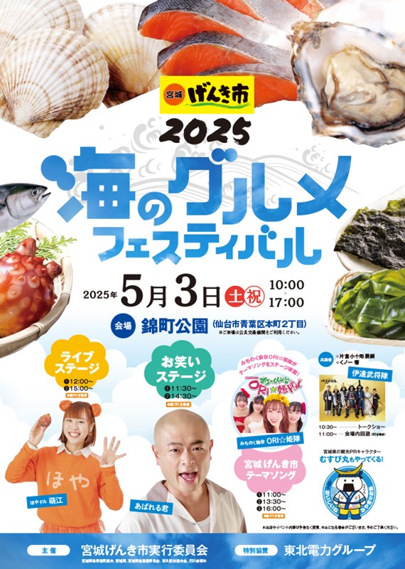 飲食店ブースのほか、お笑いコンビ・カミナリさんや芸人のダーヨシさんによるお笑いステージ、ほやドル・萌江さんによるライブステージ、みちのく仙台ORI☆姫隊さんによる「宮城げんき市」テーマソングの披露、など様々なアトラクションを開催。