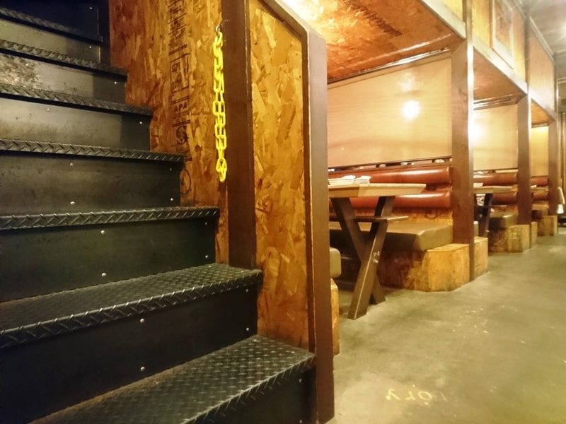 ▼テーブル席とお座敷の間には階段が!